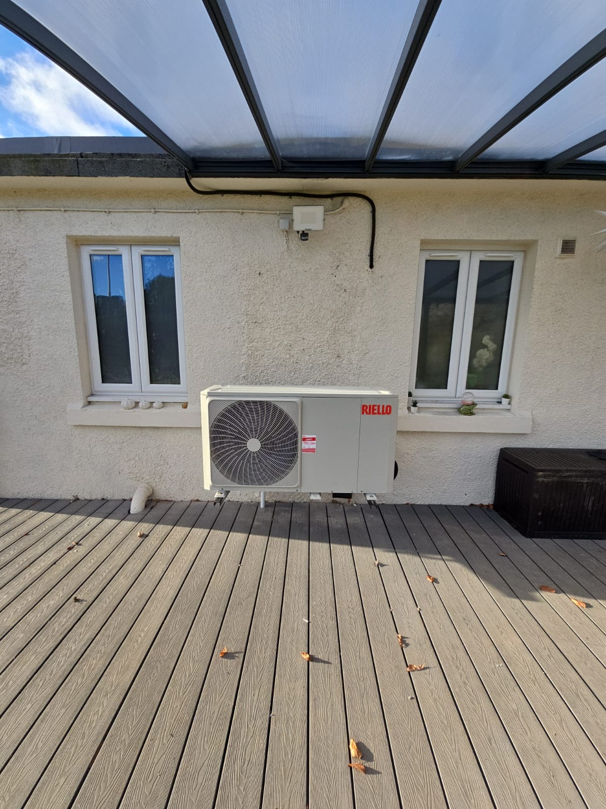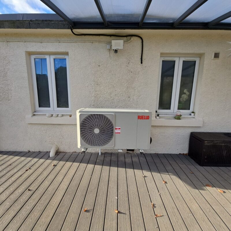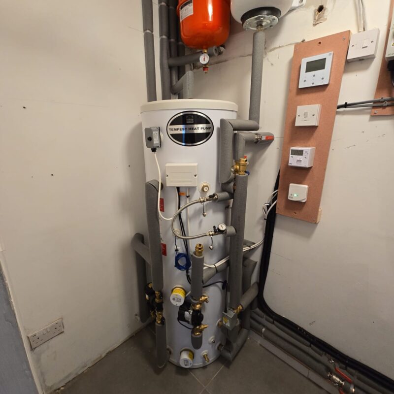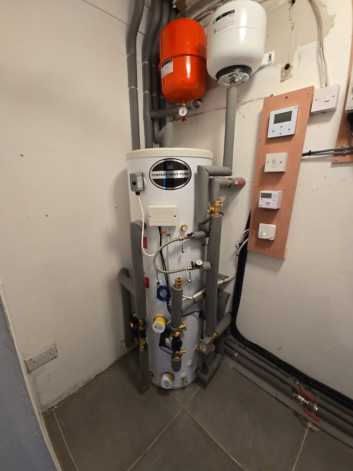 **6kW Riello Heat Pump paired with a 150L Tempest Pre-Plumbed Water Cylinder, providing reliable and energy-efficient heating and hot water at the touch of a button.